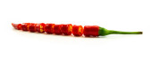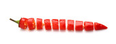 z bliska, świeże czerwone chili, pokrojone pikantne przyprawy. Pojęcie surowych składników żywności. izolowany na białym tle.