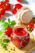 Koncepcja smacznego jedzenia z adjika, zbliżenie