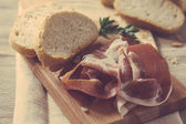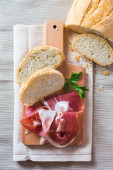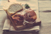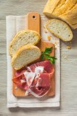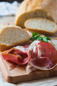Zdjęcie "Chleb i plasterki szynki na pokładzie cięcia" może być wykorzystywane do celów osobistych i komercyjnych zgodnie z warunkami zakupionej licencji Royalty-free. Obraz jest dostępny do pobrania w jakości wysokiej rozdzielczości do 5760x3840.