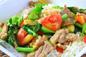 Zdjęcie "Widok z bliska smażonego ryżu bazylii z mieloną wieprzowiną w plastikowym pudełku" może być wykorzystywane do celów osobistych i komercyjnych zgodnie z warunkami zakupionej licencji Royalty-free. Obraz jest dostępny do pobrania w jakości wysokiej rozdzielczości do 5760x3840.