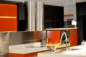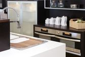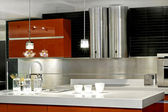 nowoczesne brązowy drewno kuchnia ze stali nierdzewnej