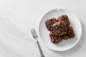 ciemne czekoladowe ciasteczka z czekoladowymi frytkami na wierzchu