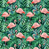 Zdjęcie "Różowy flaming i liście palmy, tropikalne ptaki akwarela ilustracja. Płynne wzory." może być wykorzystywane do celów osobistych i komercyjnych zgodnie z warunkami zakupionej licencji Royalty-free. Obraz jest dostępny do pobrania w jakości wysokiej rozdzielczości do 5760x3840.