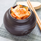 sfermentowana kapusta koreańska kimchi w drewnianej misce