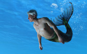 3D renderowanie: stworzenie syreny pływa pod morzem
