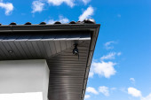 Zdjęcie "Światło czujnika ruchu zamontowane na elewacji budynku nad bramą garażową w kolorze antracytowym." może być wykorzystywane do celów osobistych i komercyjnych zgodnie z warunkami zakupionej licencji Royalty-free. Obraz jest dostępny do pobrania w jakości wysokiej rozdzielczości do 5760x3840.