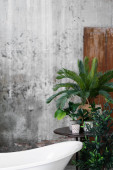 Przytulne wnętrze łazienki ze stylową wanną ceramiczną