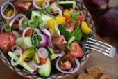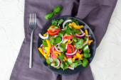 Zdjęcie "Płyta pysznej meksykańskiej sałatki warzywnej z czarną fasolą i rzodkiewką na stole, zbliżenie" może być wykorzystywane do celów osobistych i komercyjnych zgodnie z warunkami zakupionej licencji Royalty-free. Obraz jest dostępny do pobrania w jakości wysokiej rozdzielczości do 5760x3840.
