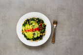 Zdjęcie "Płyta meksykańskiej sałatki warzywnej z czarną fasolą i rzodkiewką na tle koloru" może być wykorzystywane do celów osobistych i komercyjnych zgodnie z warunkami zakupionej licencji Royalty-free. Obraz jest dostępny do pobrania w jakości wysokiej rozdzielczości do 5760x3840.