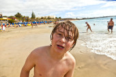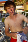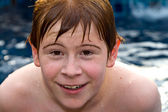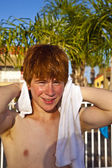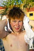 chłopiec przy użyciu ręcznikiem po kąpieli w basenie