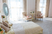 Detal obrazu Poduszki na zabytkowej luksusowej sofie, wystroju wnętrz i dekoracji