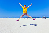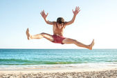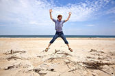 młody chłopak wyskakując z wody na tropikalnej plaży