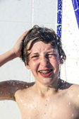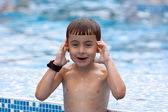 chłopiec z Rude włosy to pływanie w basenie i enyoing świeże