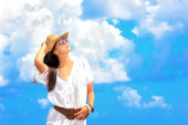 miła dziewczyna stoi przed drzewa