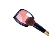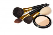 zbiór różnych makijaż gąbki i szczotka, na białym tle
