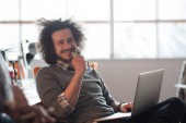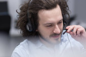 Zdjęcie "Uśmiechnięty biznesmen noszący zestaw słuchawkowy mający wirtualny zespół spotykający się na rozmowie grupowej z różnymi osobami w obsłudze klienta. Wideokonferencja połączenie na komputerze z menedżerem i pracownikami." może być wykorzystywane do celów osobistych i komercyjnych zgodnie z warunkami zakupionej licencji Royalty-free. Obraz jest dostępny do pobrania w jakości wysokiej rozdzielczości do 5760x3840.