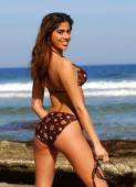 Zdjęcie "Leopard One Piece Oszałamiająca brazylijska Brunetka oszałamiająca stojąca elegancka szczupła godzina szklana kształt naturalny jędrny wygląd prawdziwego sugestywnego piękna " może być wykorzystywane do celów osobistych i komercyjnych zgodnie z warunkami zakupionej licencji Royalty-free. Obraz jest dostępny do pobrania w jakości wysokiej rozdzielczości do 5760x3840.