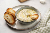 Zdjęcie "Tradycyjne danie kuchni arabskiej baba ganoush z pieczonych bakłażanów, tahin, kolendry, czosnku, oliwy z oliwek, sok z cytryny z grzankami bagietki na szarym tle" może być wykorzystywane do celów osobistych i komercyjnych zgodnie z warunkami zakupionej licencji Royalty-free. Obraz jest dostępny do pobrania w jakości wysokiej rozdzielczości do 5760x3840.