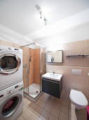 Zdjęcie "Łazienka z wanną, lustrem, toaletą, pralką i umywalką, bardzo ważny pokój w każdym domu." może być wykorzystywane do celów osobistych i komercyjnych zgodnie z warunkami zakupionej licencji Royalty-free. Obraz jest dostępny do pobrania w jakości wysokiej rozdzielczości do 5760x3840.