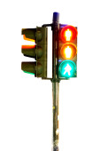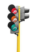 Sygnalizacja świetlna na białym tle świeci zielony