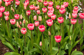 różowe tulipany w polu .
