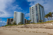 RIVIERA BEACH, FLORIDA - LUTY 20, 2022: Luksusowe mieszkania na Singer Island, Fl. Singer Island nadmorskiej części miasta Riviera Beach z naturalnych plaż i ekskluzywnych hoteli