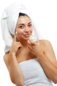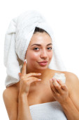 piękne kobiety stosujące kosmetyk krem nawilżający na twarz.