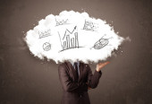 Elegancki biznes człowiek chmura głowa z ręcznie rysowane wykresy