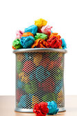 koszu na śmieci z papieru odpadów na białym tle na biały