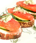 Zdjęcie "Canape ze ser, ogórka i łososia, szczegół" może być wykorzystywane do celów osobistych i komercyjnych zgodnie z warunkami zakupionej licencji Royalty-free. Obraz jest dostępny do pobrania w jakości wysokiej rozdzielczości do 5760x3840.
