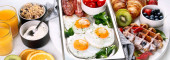 Różne sposoby gotowania jaj kurzych na jasnym tle. Śniadanie food concept.copy przestrzeń, panorama