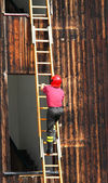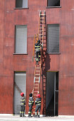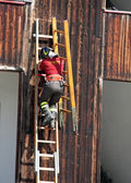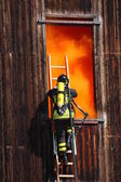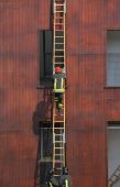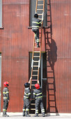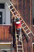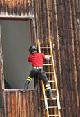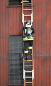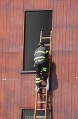 strażak podczas demonstracji użycia drabiny do osiągnięcia