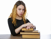 dziewczyna nastolatka pokazuje kciuk na białym tle