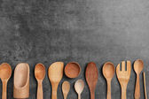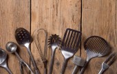 Zdjęcie "Różnorodność drewnianej metalowej łyżki plastikowej naczynia kuchenne na rustykalnym drewnie tło kopia przestrzeń tekstowa" może być wykorzystywane do celów osobistych i komercyjnych zgodnie z warunkami zakupionej licencji Royalty-free. Obraz jest dostępny do pobrania w jakości wysokiej rozdzielczości do 5760x3840.