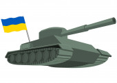 Rosyjskie czołgi kontra ukraińskie. Wojskowy konflikt agresji. Renderowanie 3D