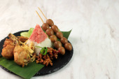Sate Lilit, Tradycyjne balijskie mielone owoce morza lub Chicken Satay z Bamboo Skewer. Czasami pozywa Lemongrass jako Aromatycznego Skewera. Służył na stole z innym Balinese Side Dish