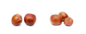 orzechy laskowe lub orzechy leszczyna na białym tle na białe tło wyłącznik