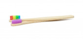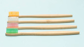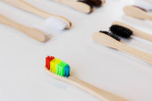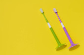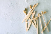 drewniane szczoteczki do zębów na białym tle, zero odpadów. Widok z góry
