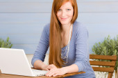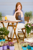 Zdjęcie "Latem taras Rude kobiety z laptopa" może być wykorzystywane do celów osobistych i komercyjnych zgodnie z warunkami zakupionej licencji Royalty-free. Obraz jest dostępny do pobrania w jakości wysokiej rozdzielczości do 5760x3840.