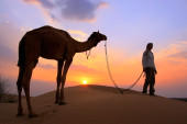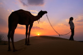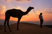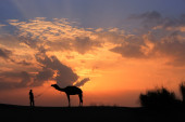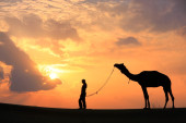 Zdjęcie "Sylwetki Beduinów chodzenie z jego wielbłąda na zachód, Thar deser" może być wykorzystywane do celów osobistych i komercyjnych zgodnie z warunkami zakupionej licencji Royalty-free. Obraz jest dostępny do pobrania w jakości wysokiej rozdzielczości do 5760x3840.