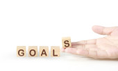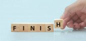 Drewniane bloki wykres kroki z miejsca kopiowania i słowo finish