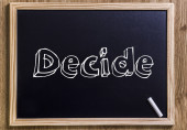 Drewniane bloki wykres kroki z miejsca kopiowania i słowo zdecydować