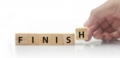 Drewniane bloki wykres kroki z miejsca kopiowania i słowo finish