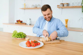 niepełnosprawny mężczyzna w wózkach do cięcia warzyw w domu