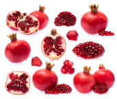 Zestaw dojrzałych granatów wyizolowanych na białym