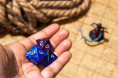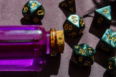 Zdjęcie "Zbliżenie obrazu kolorowych kostek do gry w role-playing wypływających ze skórzanego worka na kości" może być wykorzystywane do celów osobistych i komercyjnych zgodnie z warunkami zakupionej licencji Royalty-free. Obraz jest dostępny do pobrania w jakości wysokiej rozdzielczości do 5760x3840.