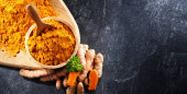 Zdjęcie "kurkuma lub korzeń kurkuminy. Kurkuma w proszku i świeża kurkuma. na konkretnym tle. Przyprawa, naturalne zabarwienie, medycyna alternatywna. Długi sztandar. widok z góry." może być wykorzystywane do celów osobistych i komercyjnych zgodnie z warunkami zakupionej licencji Royalty-free. Obraz jest dostępny do pobrania w jakości wysokiej rozdzielczości do 5760x3840.