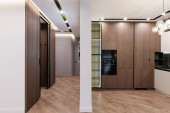 Zdjęcie "nowe jasne wnętrze w mieszkaniu z ciemną ścianą z drewna w pasku" może być wykorzystywane do celów osobistych i komercyjnych zgodnie z warunkami zakupionej licencji Royalty-free. Obraz jest dostępny do pobrania w jakości wysokiej rozdzielczości do 5760x3840.