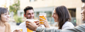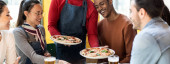 Uśmiechnięci przyjaciele jedzący pizzę w nowoczesnej pizzerii - koncepcja przyjaźni z wieloetnicznymi ludźmi bawiącymi się razem w pizzerii z pizzerią i piwem