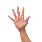ręka pokazująca pięć palców odizolowanych na białym tle - ścieżki obcinania